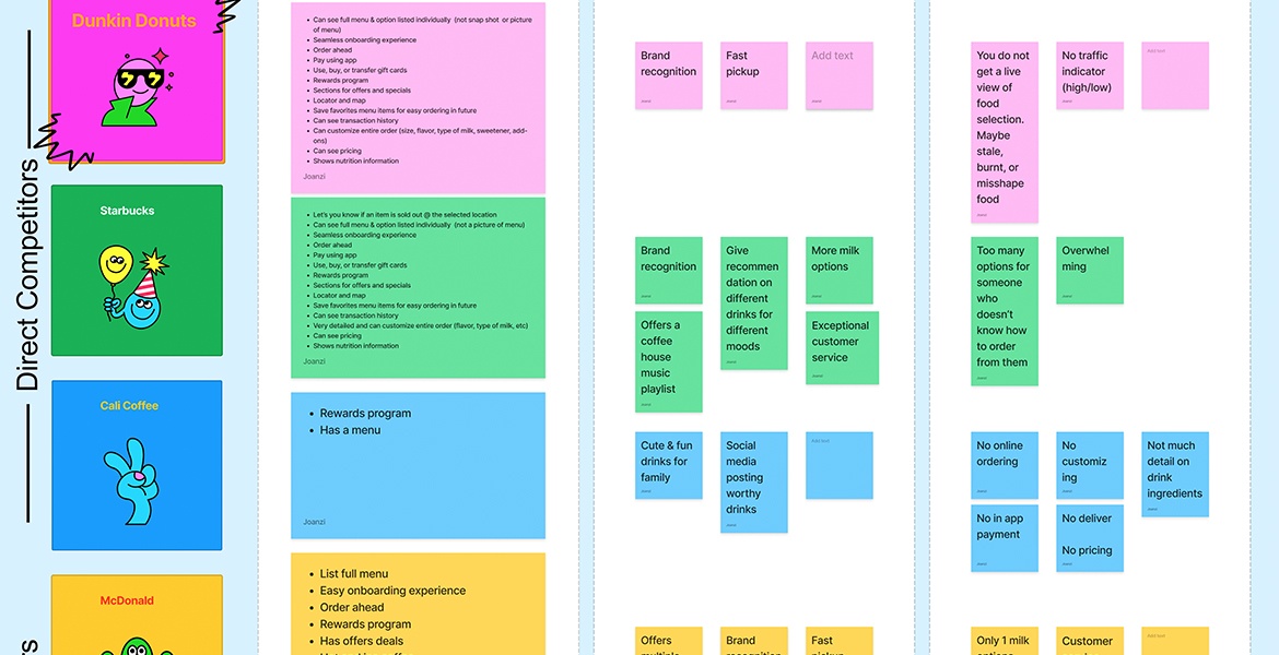 - After selecting Dunkin' Donuts as my focus, I aimed to define the key objectives required to enhance customer experience. My approach involved conducting broad explorations, seeking diverse ideas and possibilities. I facilitated this process through brainstorming sessions, comprehensive market research, and in-depth analysis of user needs and pain points. By gathering a wide range of insights, I set the foundation for addressing the problem and identifying potential improvements to elevate the overall customer experience