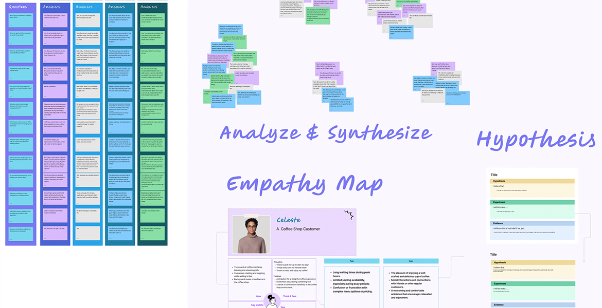 - To streamline my selection process, I conducted user interviews to quickly gather more user information and identify preferred features among the target audience. I then synthesized the UX research data using the Think/Feel/Say/Do and empathy mapping techniques, enabling me to develop a few hypotheses based on the users' perspectives and needs.