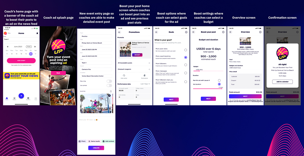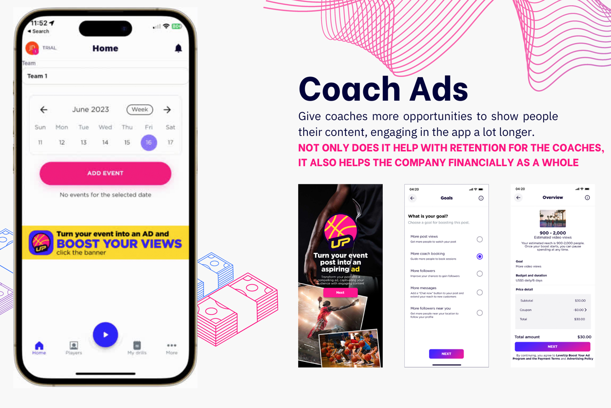 The goal of this particular project is to add a feature that would let coaches boost their post into ads that would improve event visibility and make it easier for users to join their events.